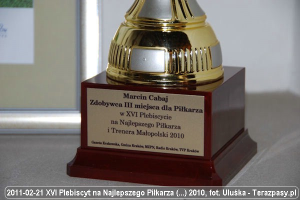 Przedstawiamy fotogalerię (13 zdjęć - fot. Uluśka) z wręczenia nagród laureatom XVI Plebiscytu na Najlepszego Piłkarza Małopolski w 2010 roku. Podczas uroczystej gali w Pałacu Bonerowskim nagrodzeni zostali m.in. Marcin Cabaj i Mateusz Klich.