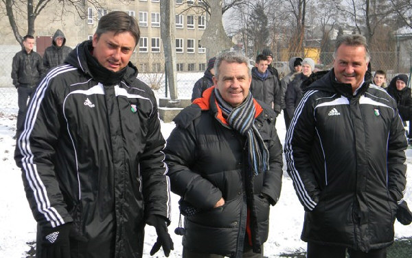 Fot. SMS - Trener Piotr Kocąb, dyrektor ds. sportowych SMS (w środku) w towarzystwie trenera Legii Macieja Skorży i lekarza legionistów doktora Stanisława Machowskiego.