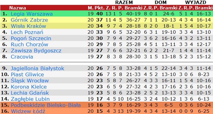 Na niedzielę zaplanowano dwa mecze. Sąsiadujący w tabeli z Cracovią Zawisza gra na wyjeździe z Podbeskidziem, a lider Legia Warszawa podejmuje Lechię Gdańsk.
